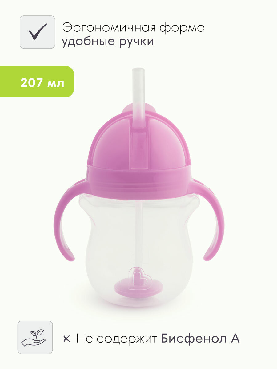 Отзывы на Поильник с трубочкой и ручками Munchkin Click Lock Any Angle Розовый/Сиреневый 2шт. 207 мл. 6+