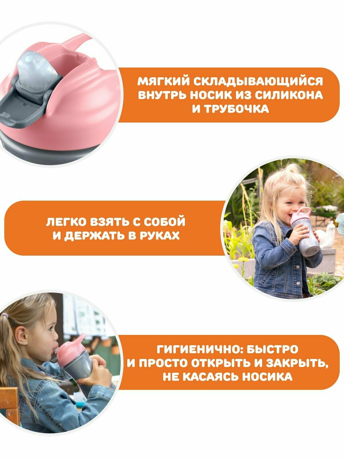 Термос-поильник детский с мягким носиком Nuvita (термопоильник - непроливайка с ремешком), 350 мл, розовый