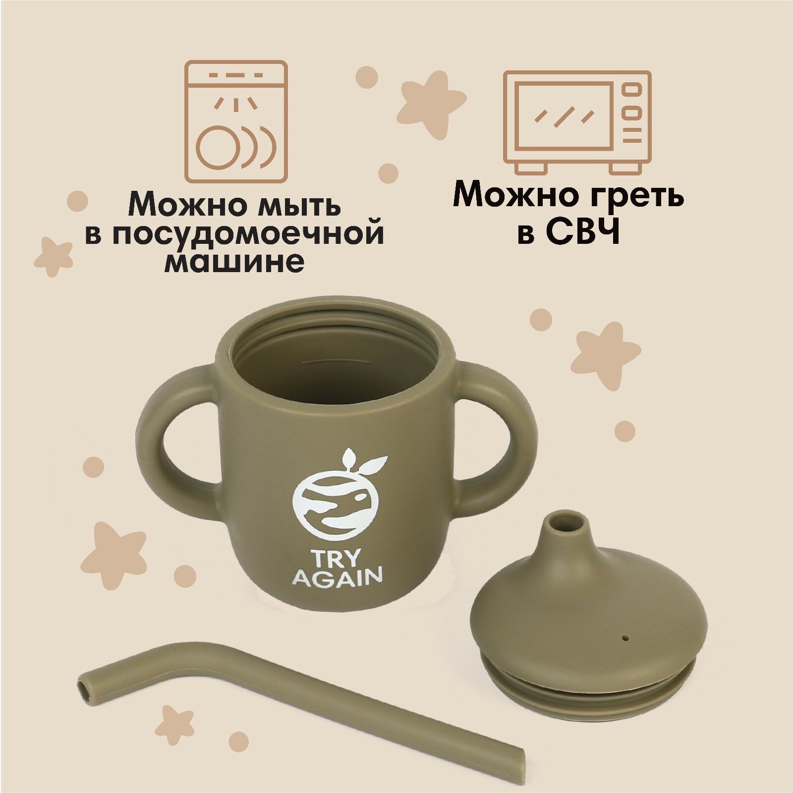 Поильник с трубочкой детский силиконовый, 200 мл, с ручками, цвет серый, Little World collection, Mum&Baby 832 ₽