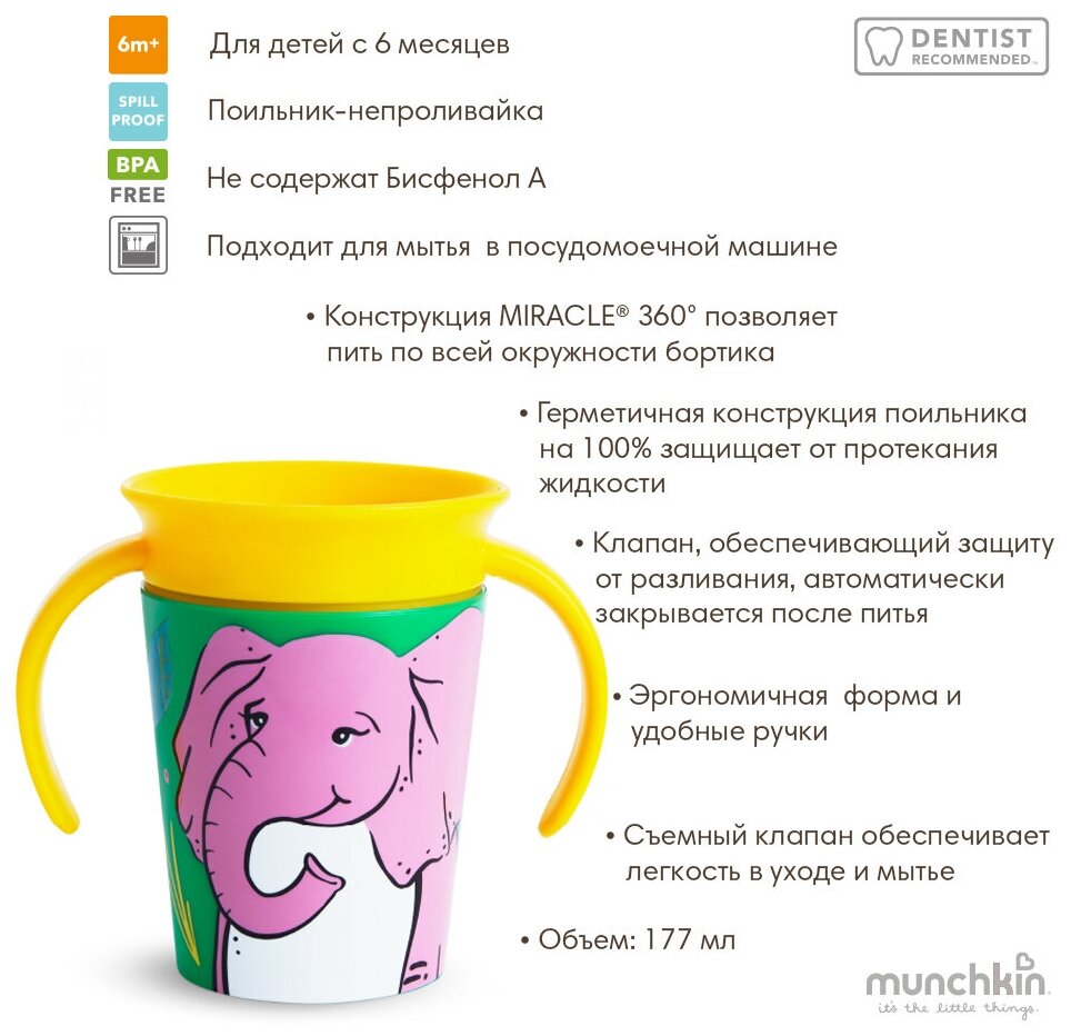 10 цен на Поильник-непроливайка Munchkin MIRACLE® 360° ЭКО с ручками Слон 177мл. 6+