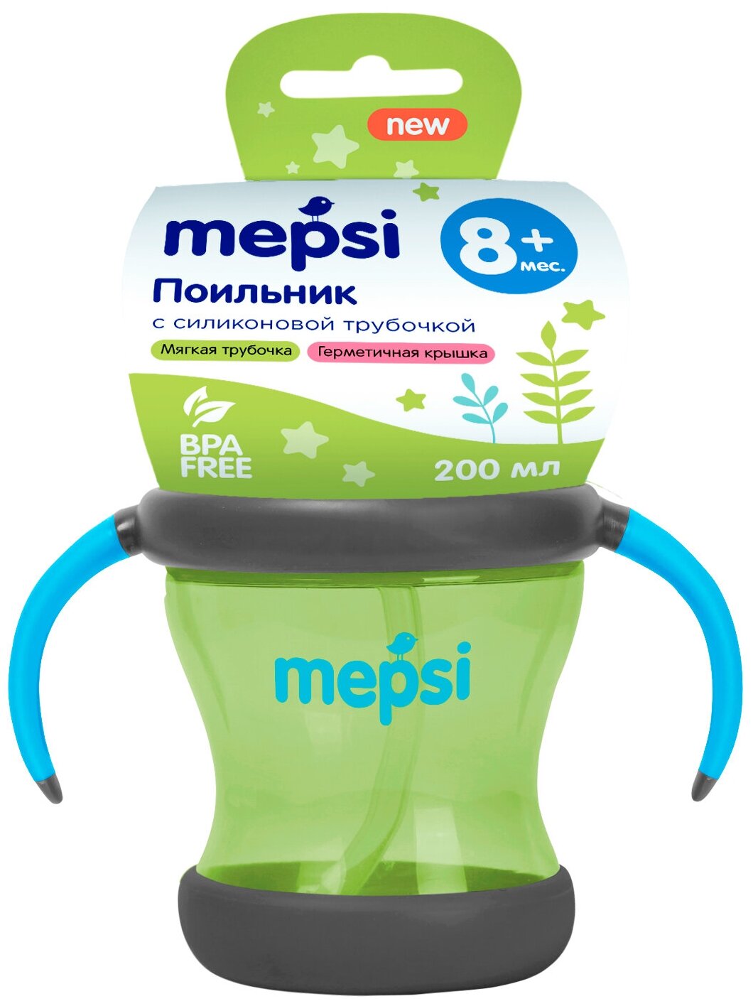 10 цен на Поильник с трубочкой MEPSI 200 мл, голубой-серый-зеленый. Поильник детский, непроливайка