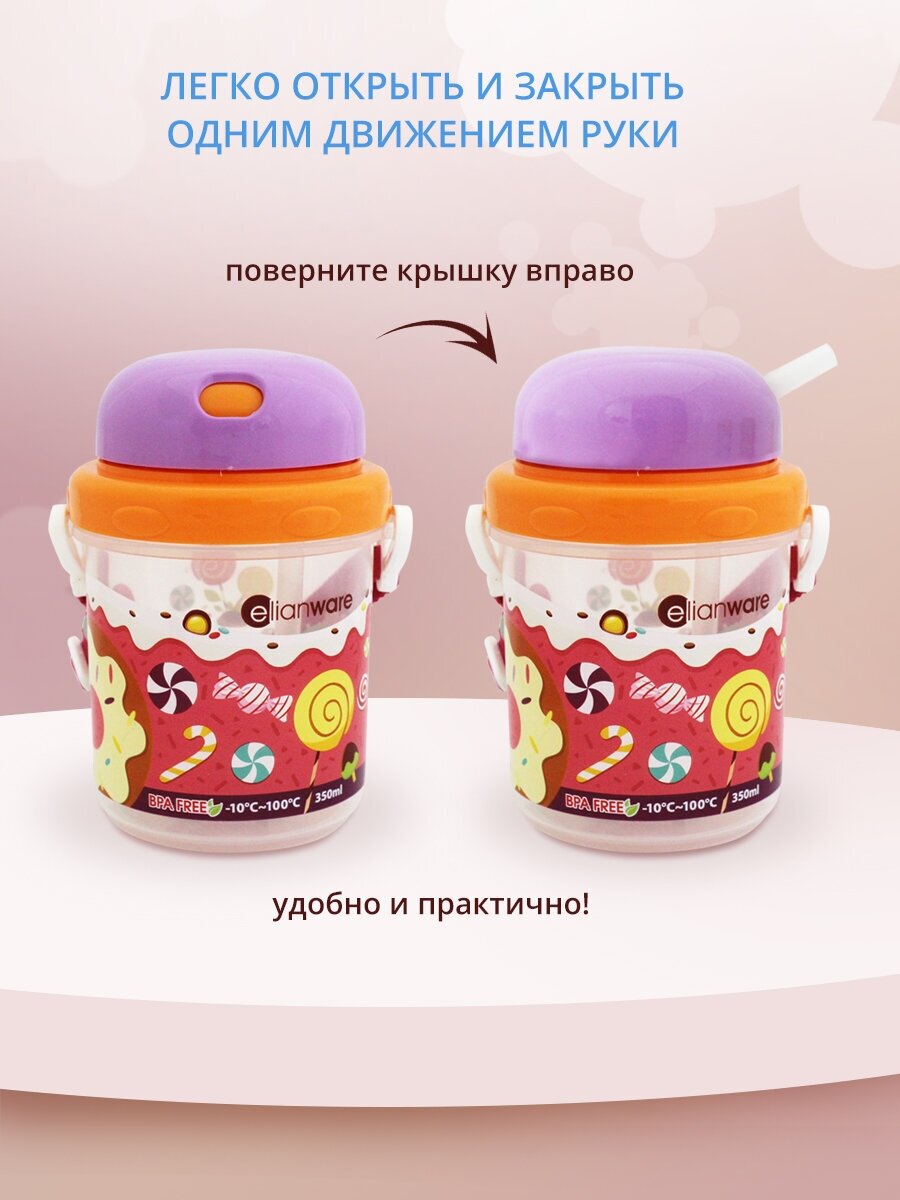 Поильник с трубочкой и крышкой 0,35л детский цвет фиолетовый информация: