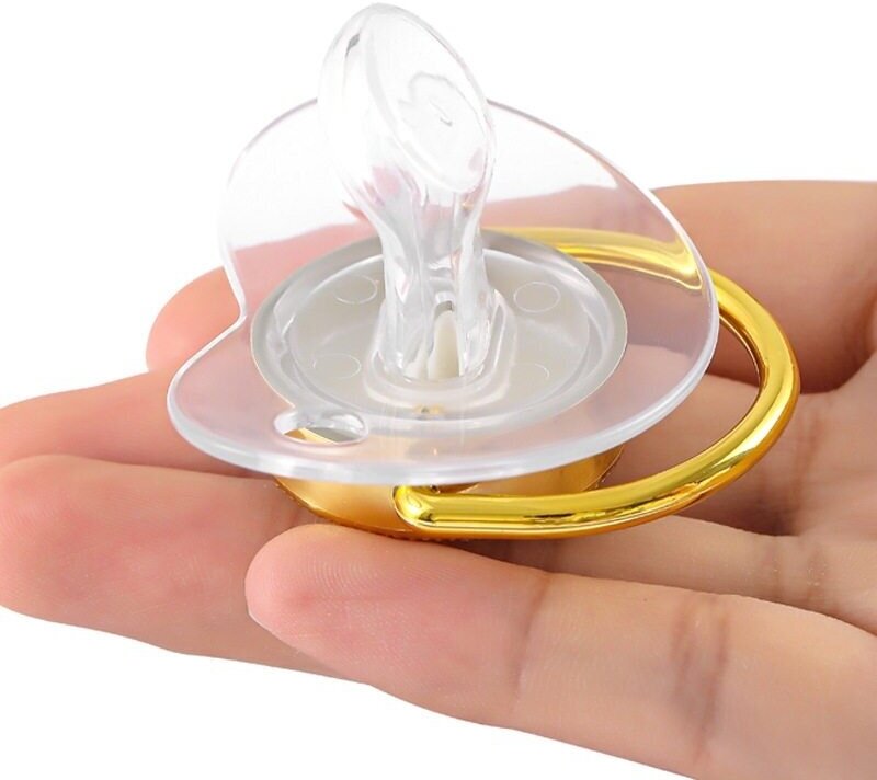 Силиконовая именная пустышка ортодонтическая с держателем в стразах