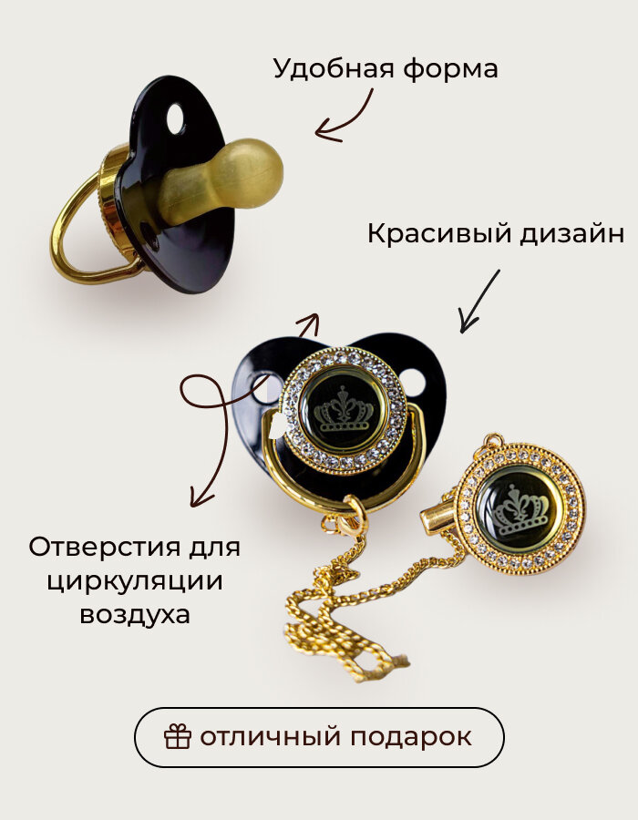 Черная пустышка для новорожденных с короной и держатель информация:
