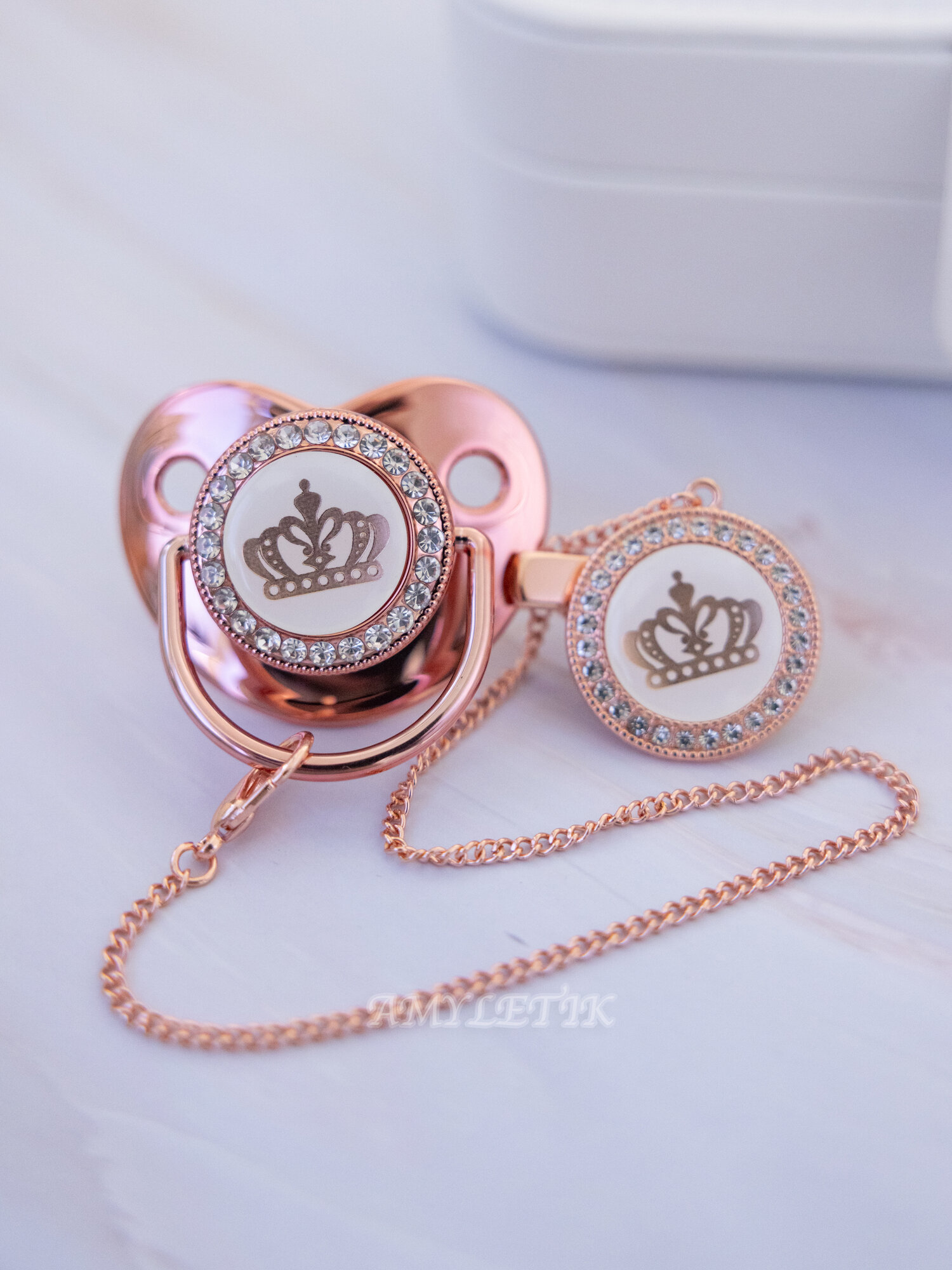 10 цен на Пустышка с короной и держателем розовая для девочек