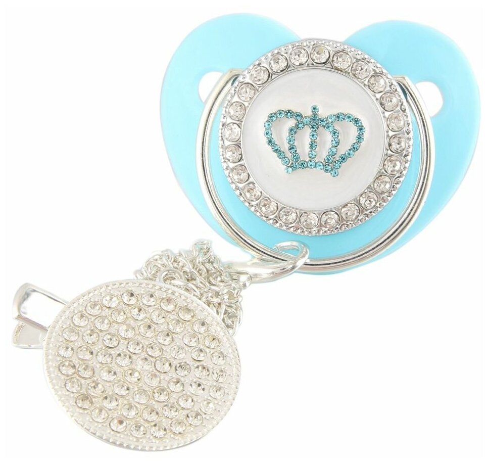 10 цен на Пустышка голубая силиконовая с короной и держателем