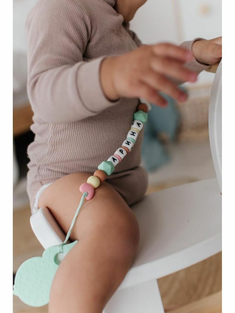Именной силиконовый держатель для пустышки с грызунком - Артём, Тёмка, для новорожденных, прорезыватель