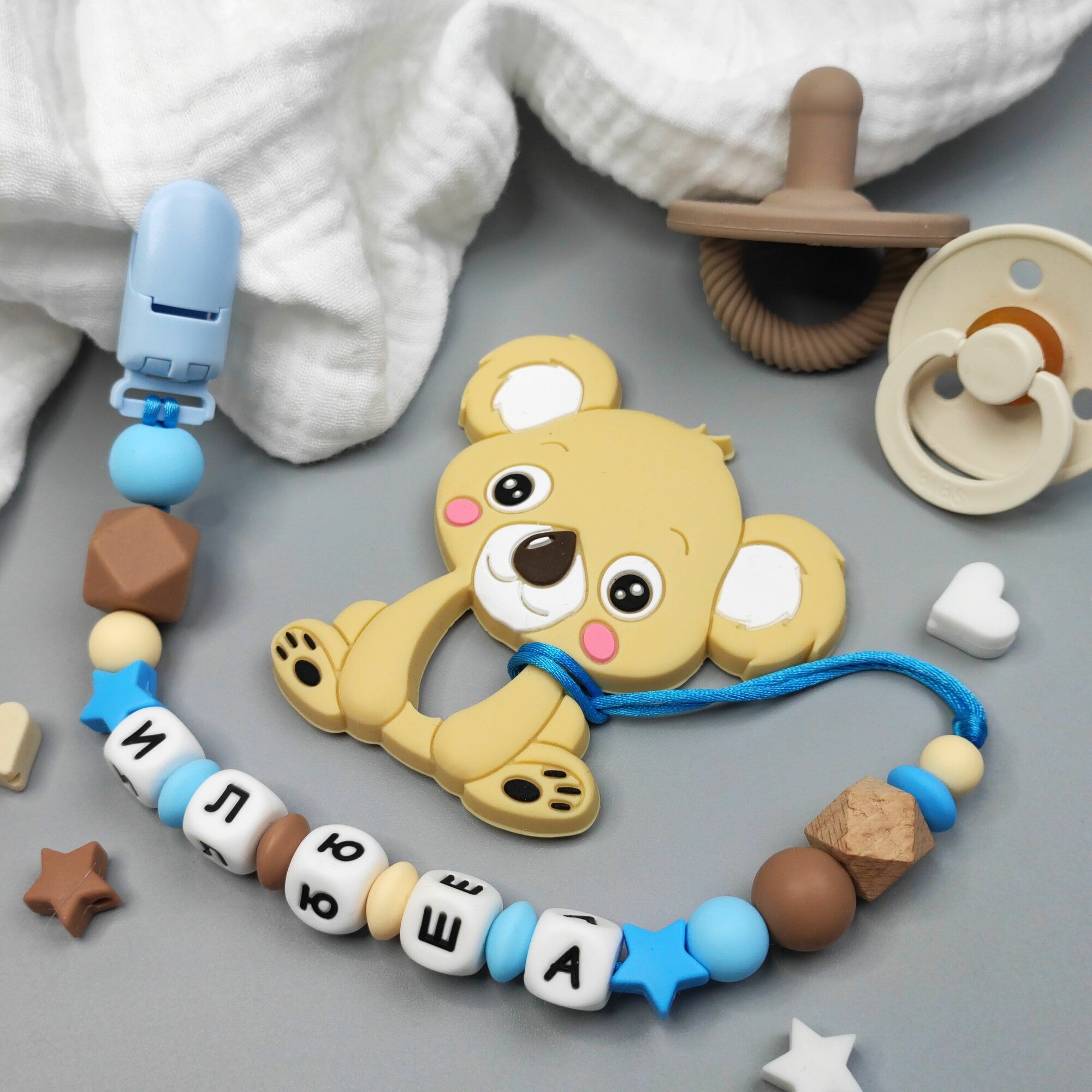Отзывы на Именной силиконовый держатель для пустышки с грызунком - Илья, Илюша