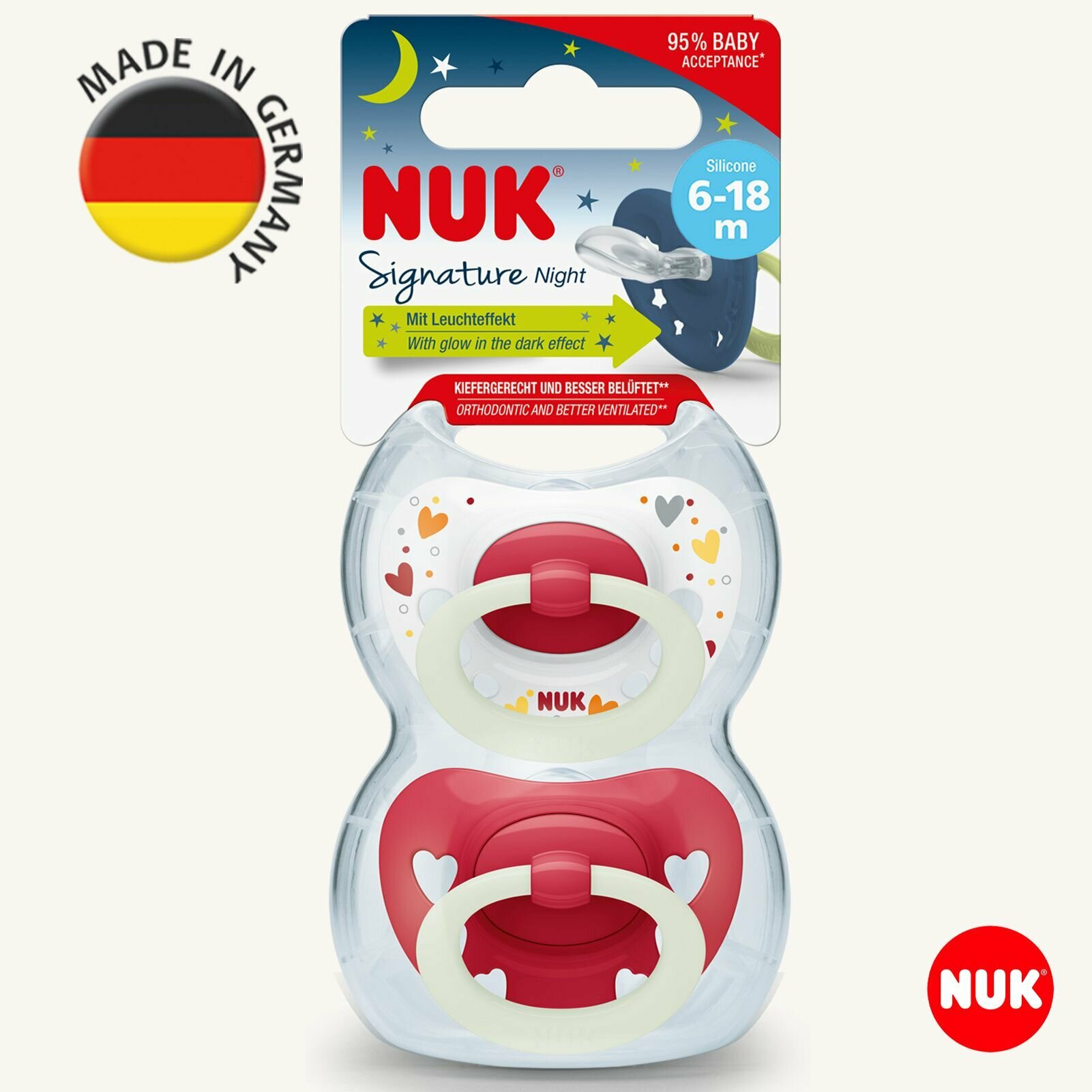 10 цен на NUK SIGNATURE NIGHT Силиконовая соска-пустышка для новорожденного 6-18 месяцев, 2 шт