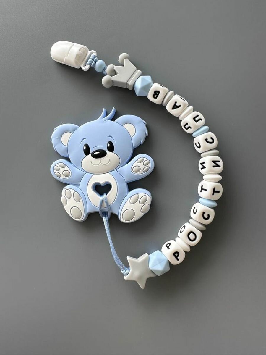 Именной силиконовый держатель для пустышки с грызунком - Артём, Тёмка, для новорожденных, прорезыватель