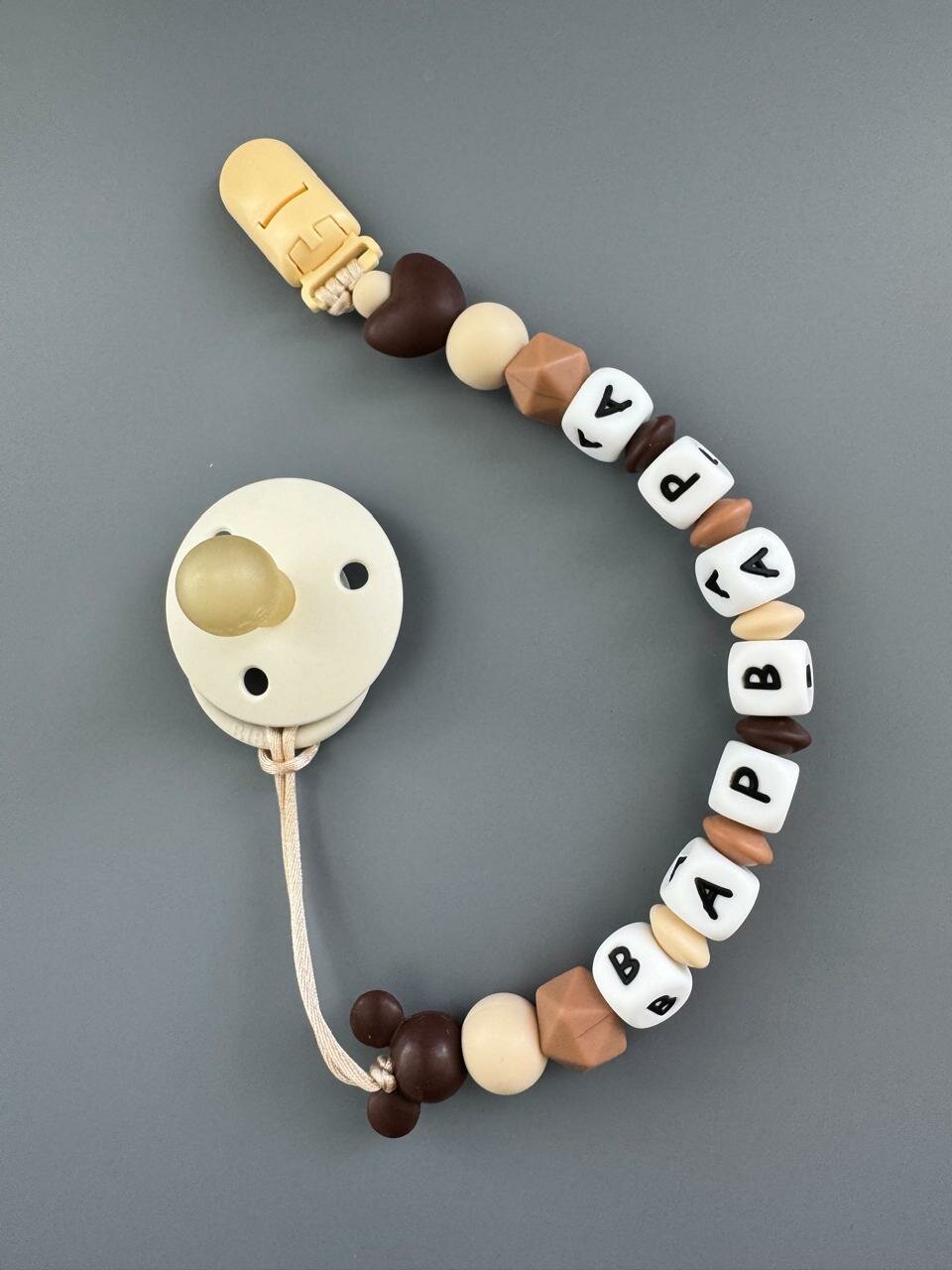 Именной силиконовый держатель для пустышки с грызунком - Артём, Тёмка, для новорожденных, прорезыватель
