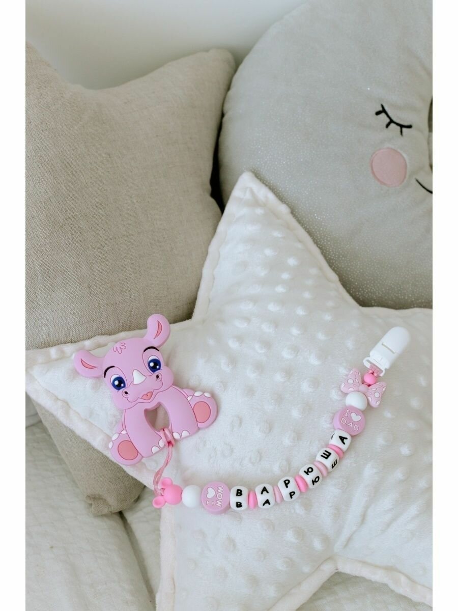 Именной силиконовый держатель для пустышки с грызунком - Артём, Тёмка, для новорожденных, прорезыватель