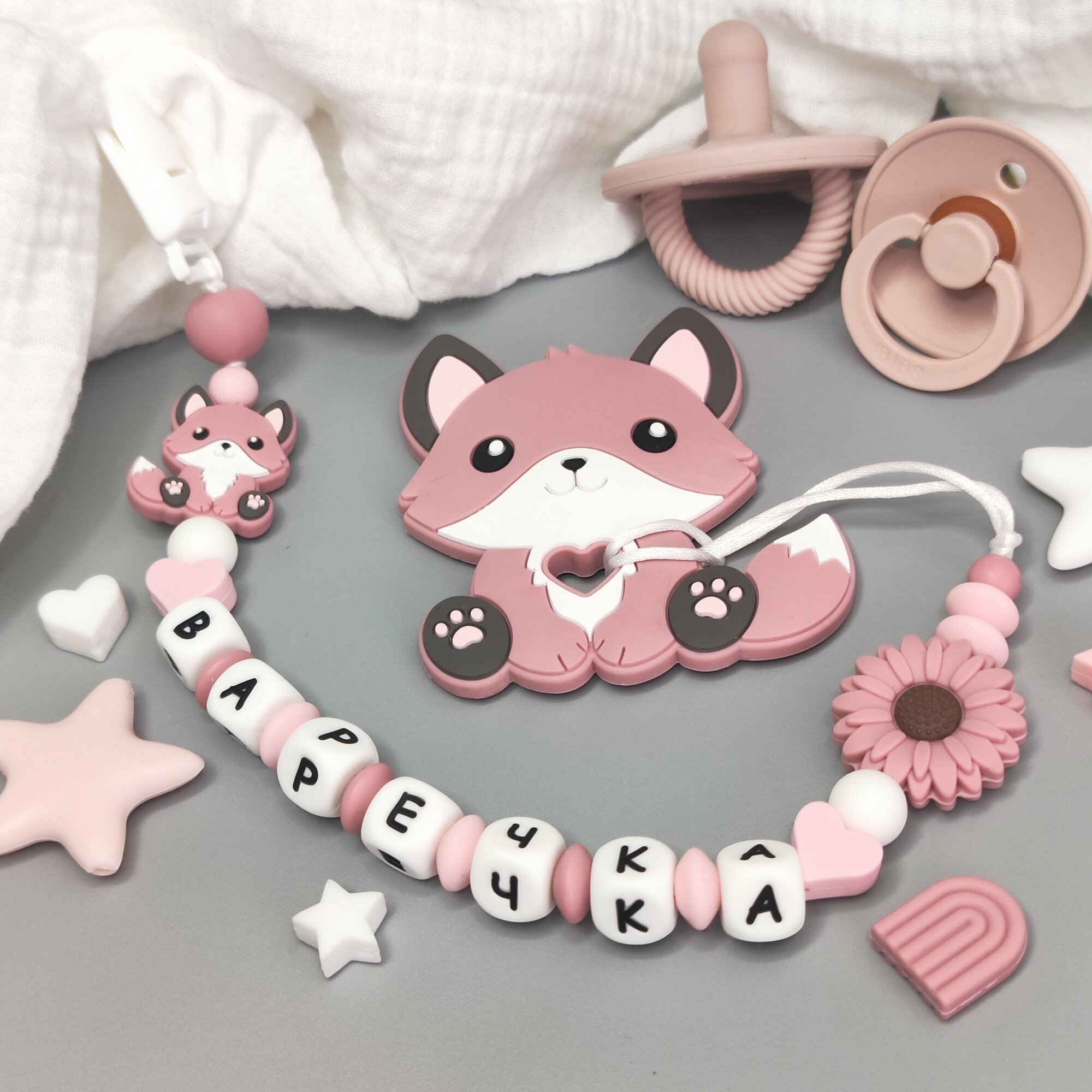 Именной силиконовый держатель для пустышки с грызунком - Артём, Тёмка, для новорожденных, прорезыватель