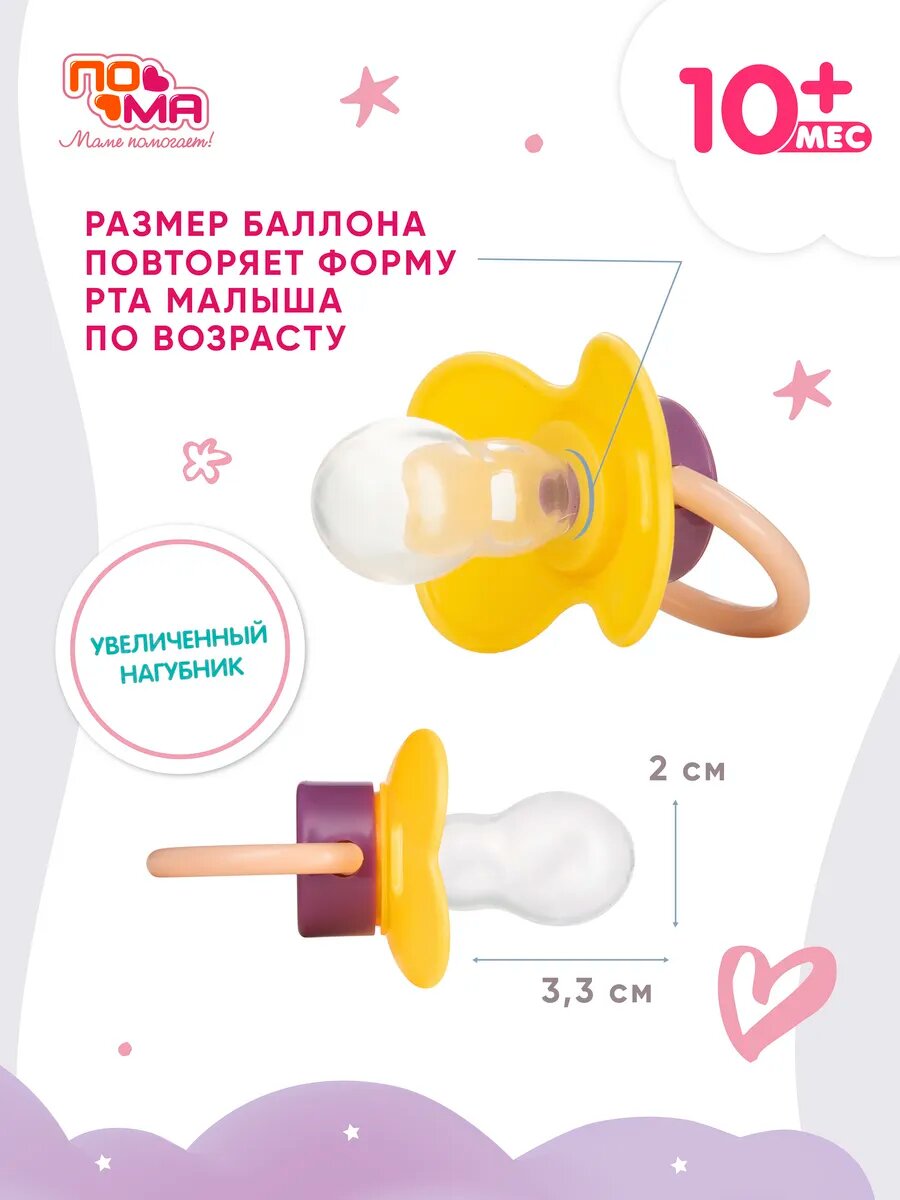 10 цен на Соска-пустышка Пома "Вишня", силиконовая, круглая, от 10 мес, цвет жёлтый/фиолетовый