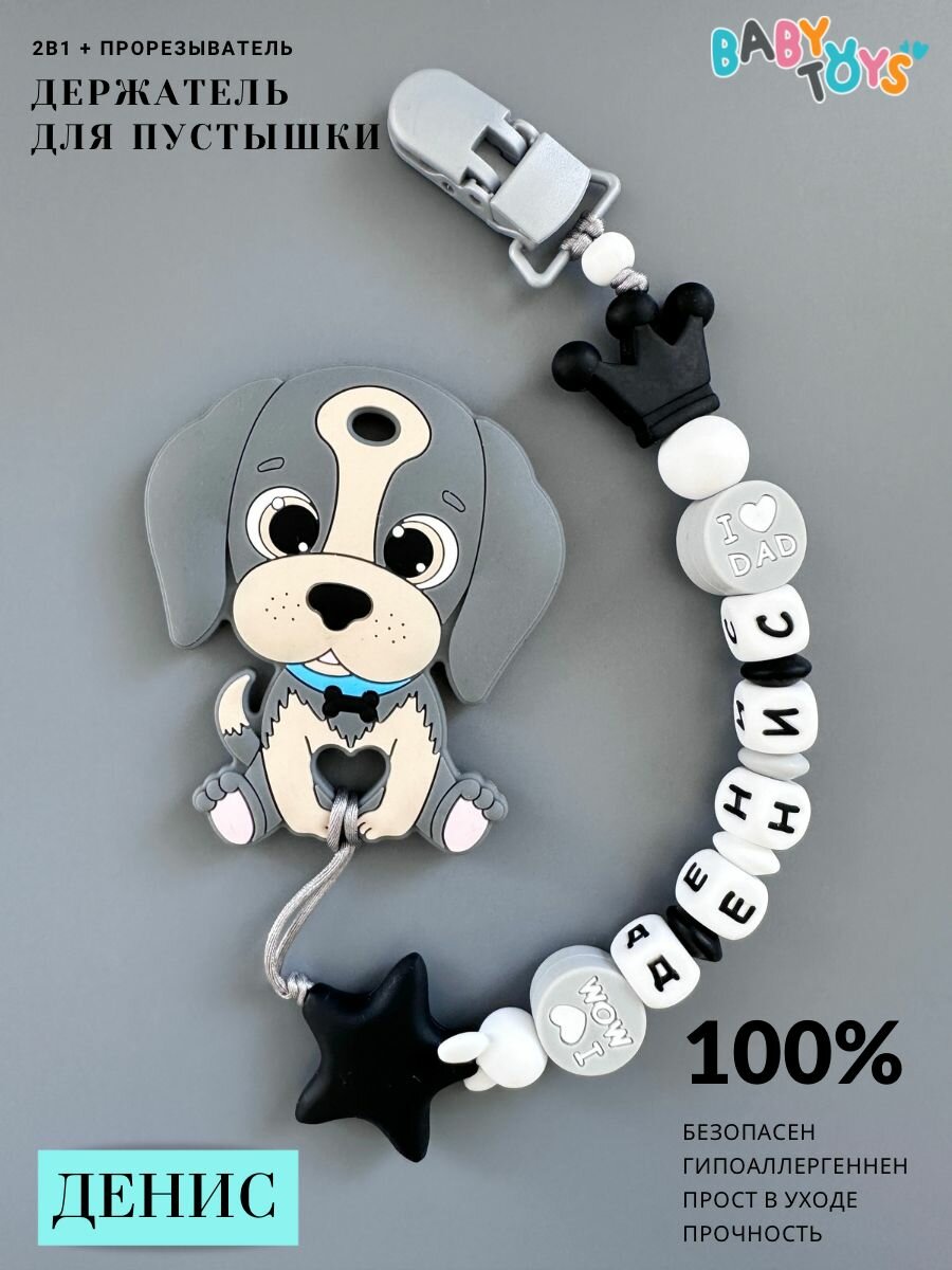 10 цен на Именной держатель для пустышки Денис прорезыватель