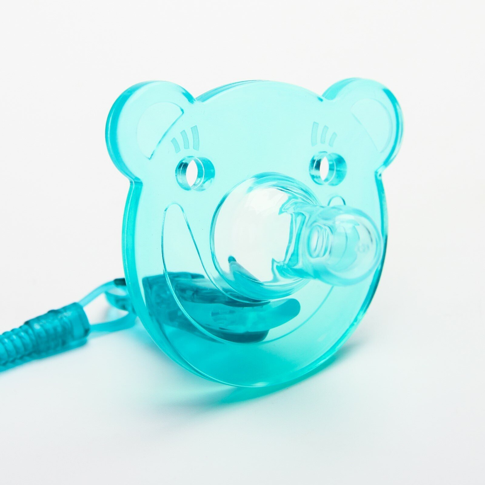 Соска - пустышка цельносиликоновая классическая «Мишка», от 0 мес, с держателем, в контейнере, цвет зеленый, Mum&Baby информация: