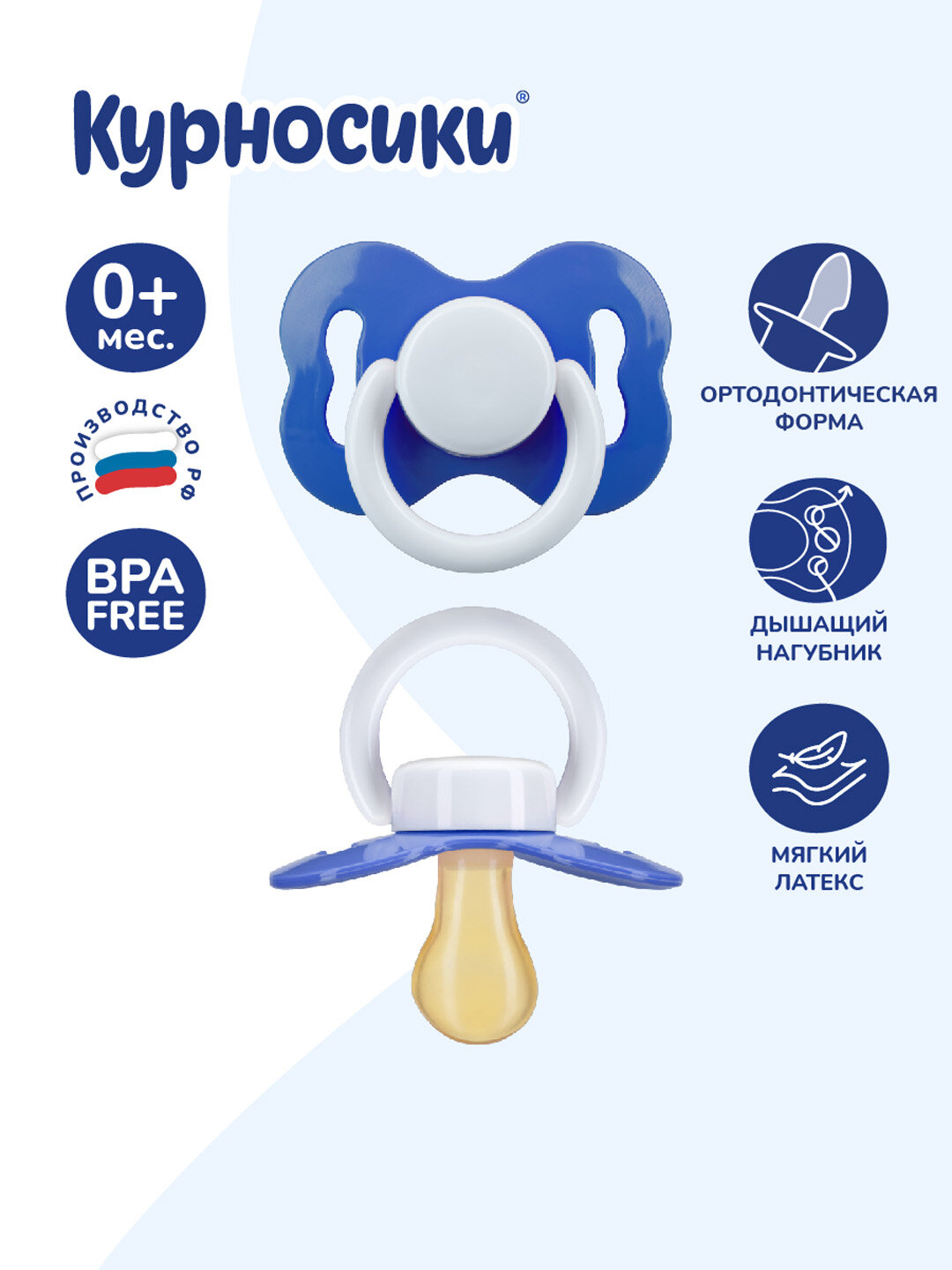 Соска-пустышка Курносики латексная ортодонтическая, нагубник-бабочка синий, 0+, 1 шт. информация: