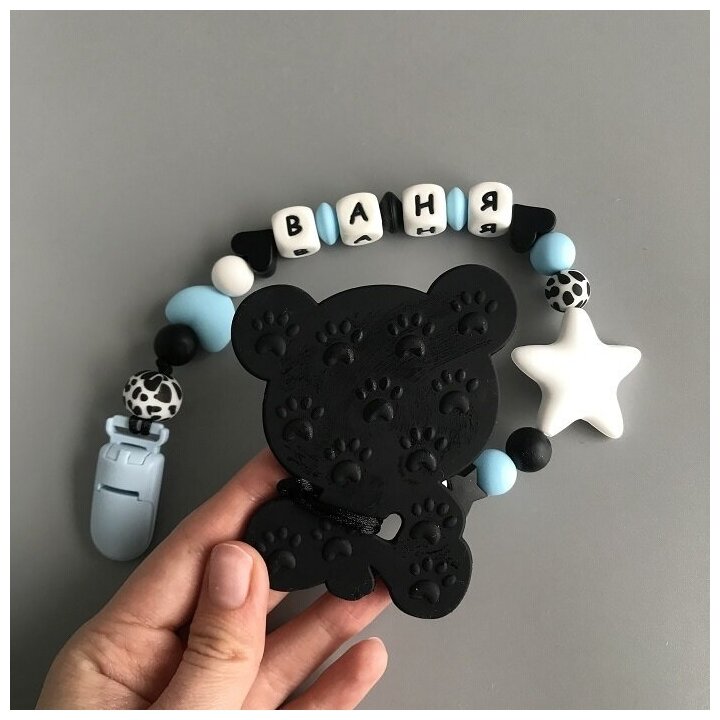 10 цен на Именной силиконовый держатель для пустышки с грызунком, Иван, Ваня