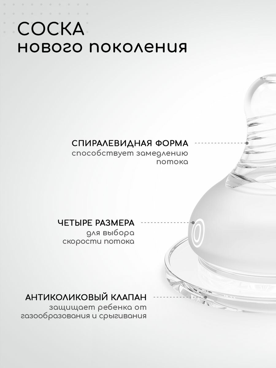 Антиколиковая соска силиконовая МирДетства для бутылочки с широким горлом, точечное отверстие и быстрый поток 6+, 1 шт.