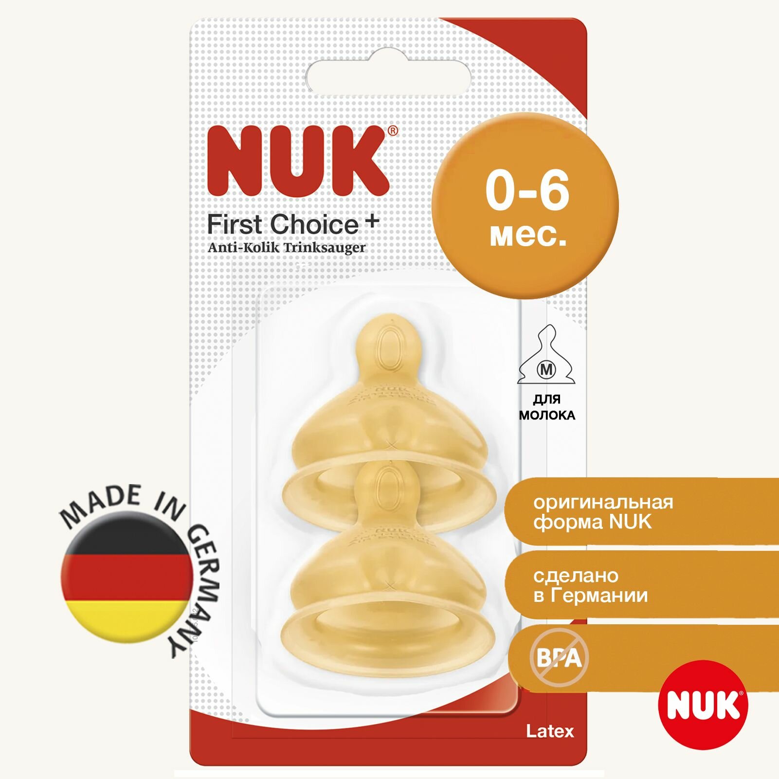 NUK FIRST CHOICE + Соска для бутылочки латексная с отверстием М (для молока), 0-6 месяцев 2 шт. информация: