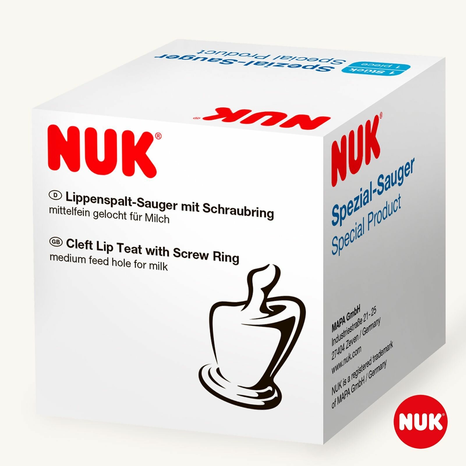 NUK Соска латексная для детей с расщелиной верхней губы, с завинчивающимся кольцом, отверстие М, разм. 0+ информация: