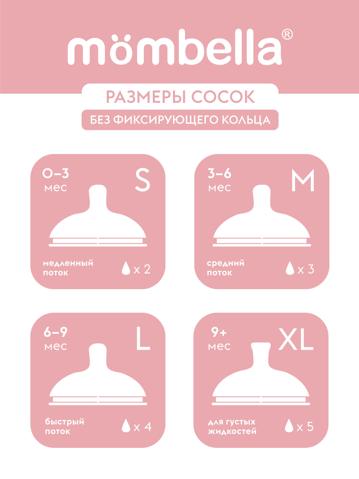 Антиколиковая соска Mombella для широкой бутылочки, 3+ мес, размер M, силиконовая информация: