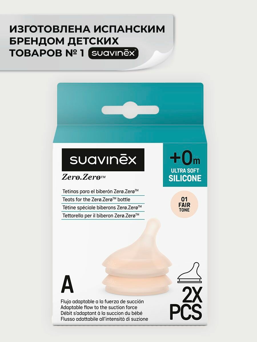 10 цен на Набор (2шт) силиконовых антиколиковых сосок адаптивный поток А, для комбинированного грудного вскармливания SUAVINEX Zero.Zero с рождения 0+