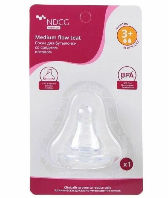Соска для бутылочки со средним потоком NDCG mother care, 3 мес+, 1 шт информация: