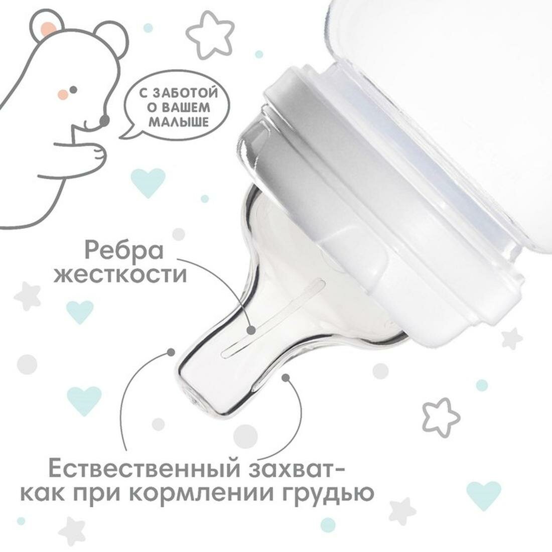 Антиколиковая соска силиконовая МирДетства для бутылочки с широким горлом, точечное отверстие и быстрый поток 6+, 1 шт.