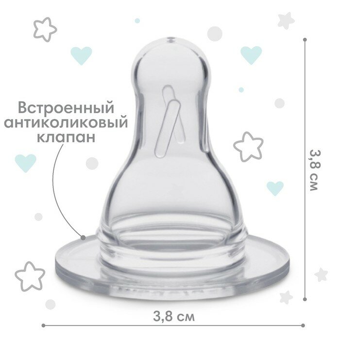 Антиколиковая соска силиконовая МирДетства для бутылочки с широким горлом, точечное отверстие и быстрый поток 6+, 1 шт.