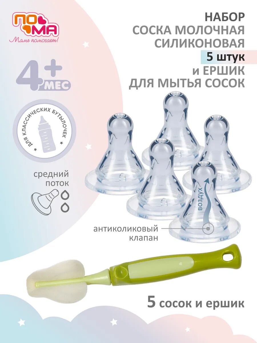 Соска молочная на стандартную бутылочку 5 шт 4 мес+ информация:
