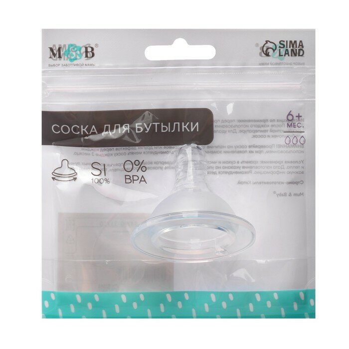 10 цен на Соска на бутылочку M&B "Standard", антиколиковая, широкое горло Ø50 мм, от 6 мес, быстрый поток, для густого питания