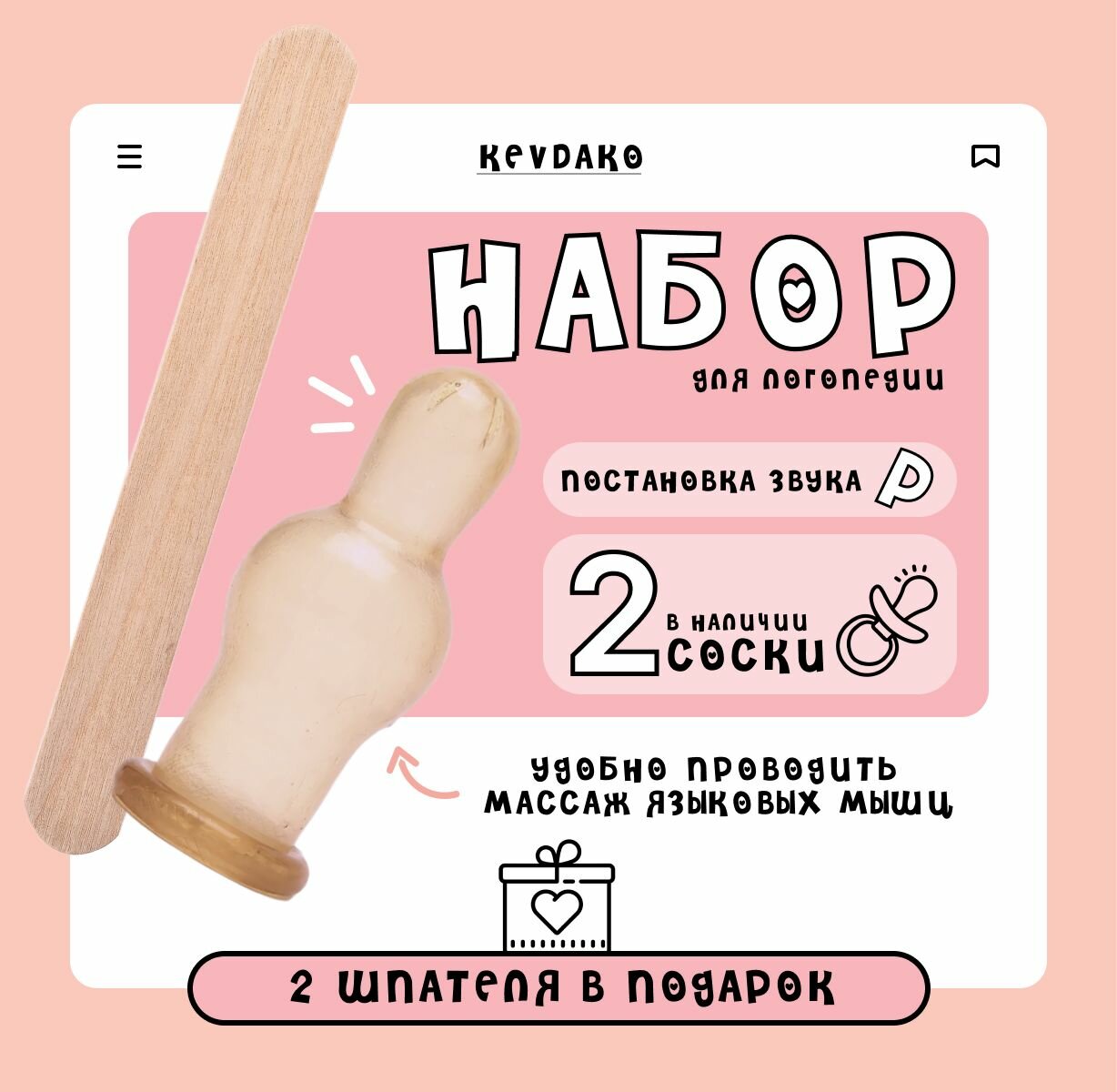 Соска классическая для занятий с логопедом и постановки звуков 2 штуки + 2 шпателя информация: