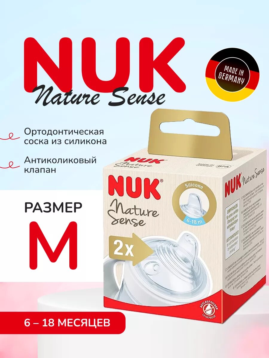 10 цен на Соска NUK Nature Sense силиконовая M 6м+, 2 шт. бесцветный