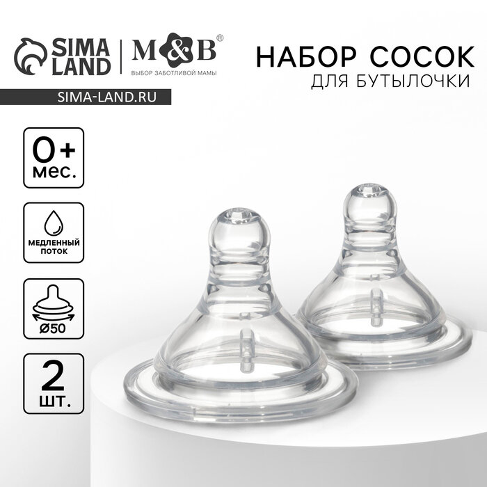10 цен на Соска на бутылочку M&B «Baby 1», антиколиковая, широкое горло Ø50 мм, от 0 мес, медленный поток, 2 шт.