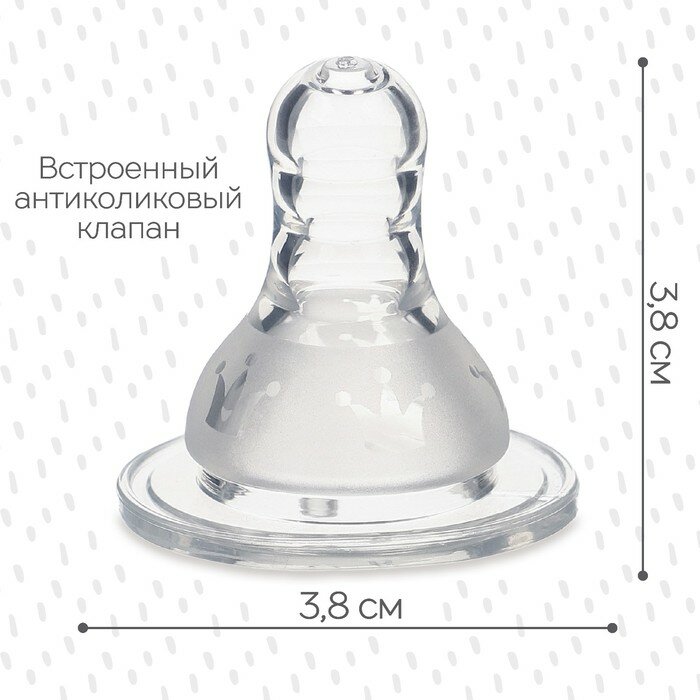 Антиколиковая соска силиконовая МирДетства для бутылочки с широким горлом, точечное отверстие и быстрый поток 6+, 1 шт.