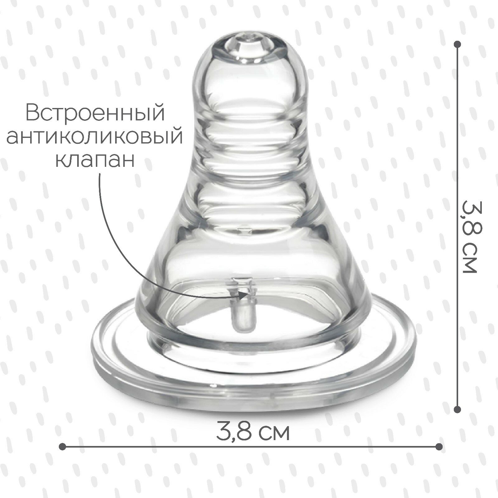 Антиколиковая соска силиконовая МирДетства для бутылочки с широким горлом, точечное отверстие и быстрый поток 6+, 1 шт.