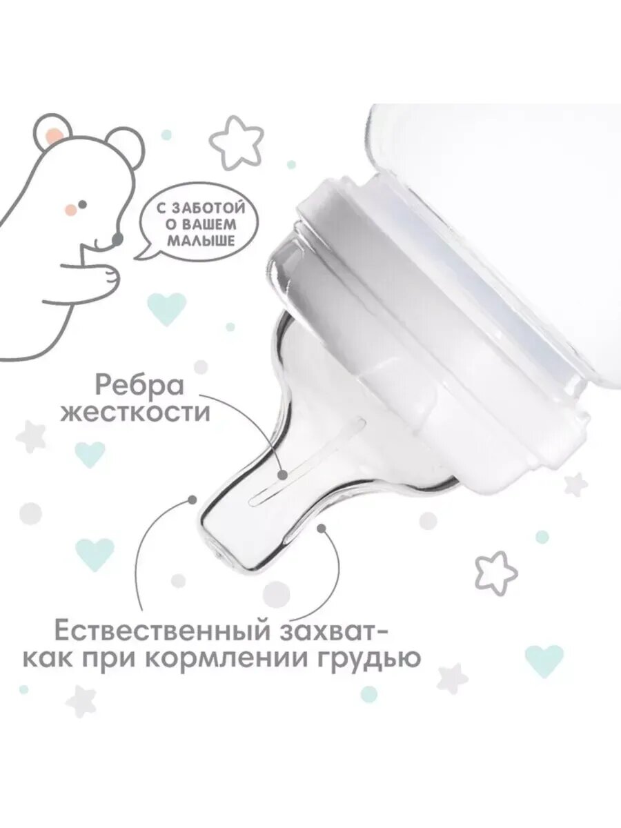 Антиколиковая соска силиконовая МирДетства для бутылочки с широким горлом, точечное отверстие и быстрый поток 6+, 1 шт.