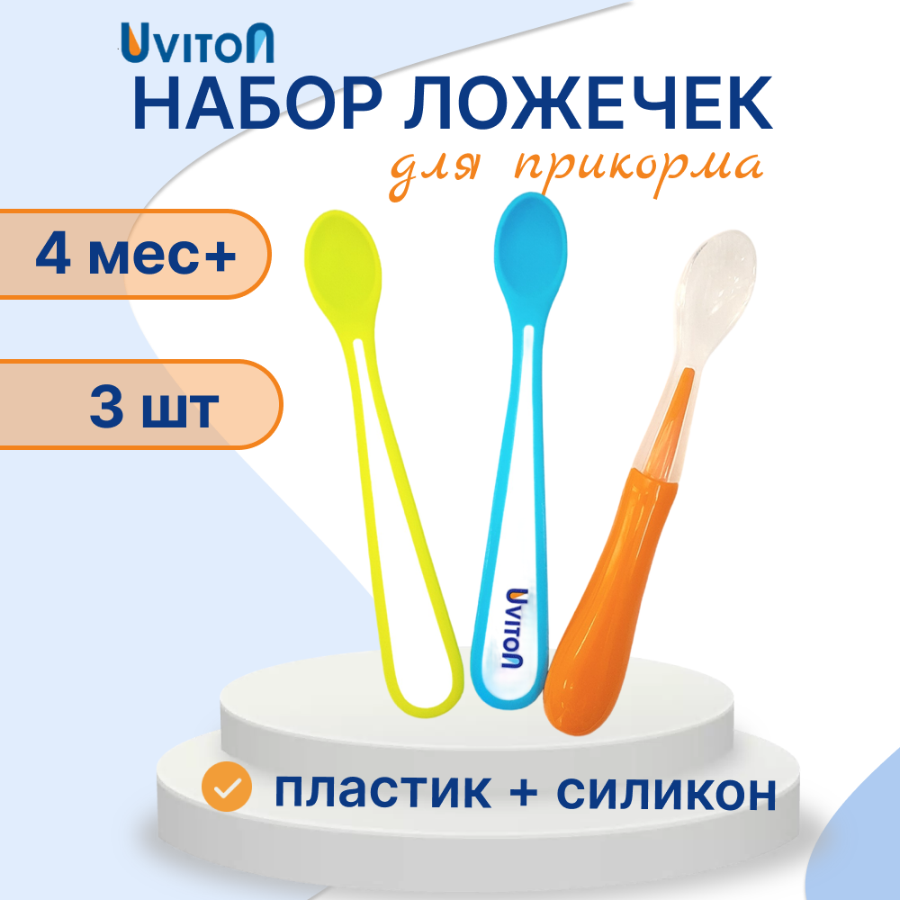 10 цен на Ложка детская для кормления силиконовая от бренда Uviton набор 3 шт