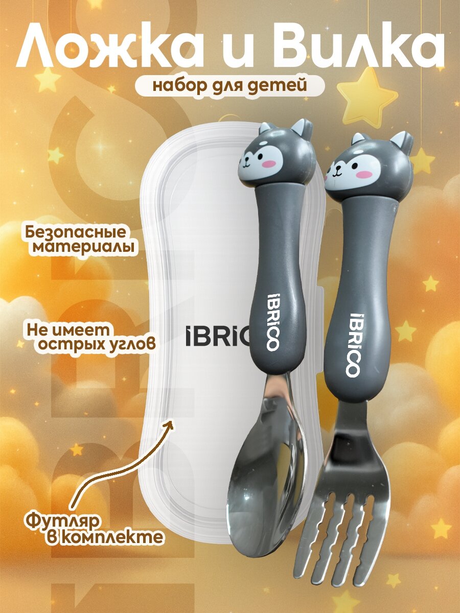 Набор для кормления детский IBRICO, с футляром, вилка, ложка, светло-серые 387 ₽