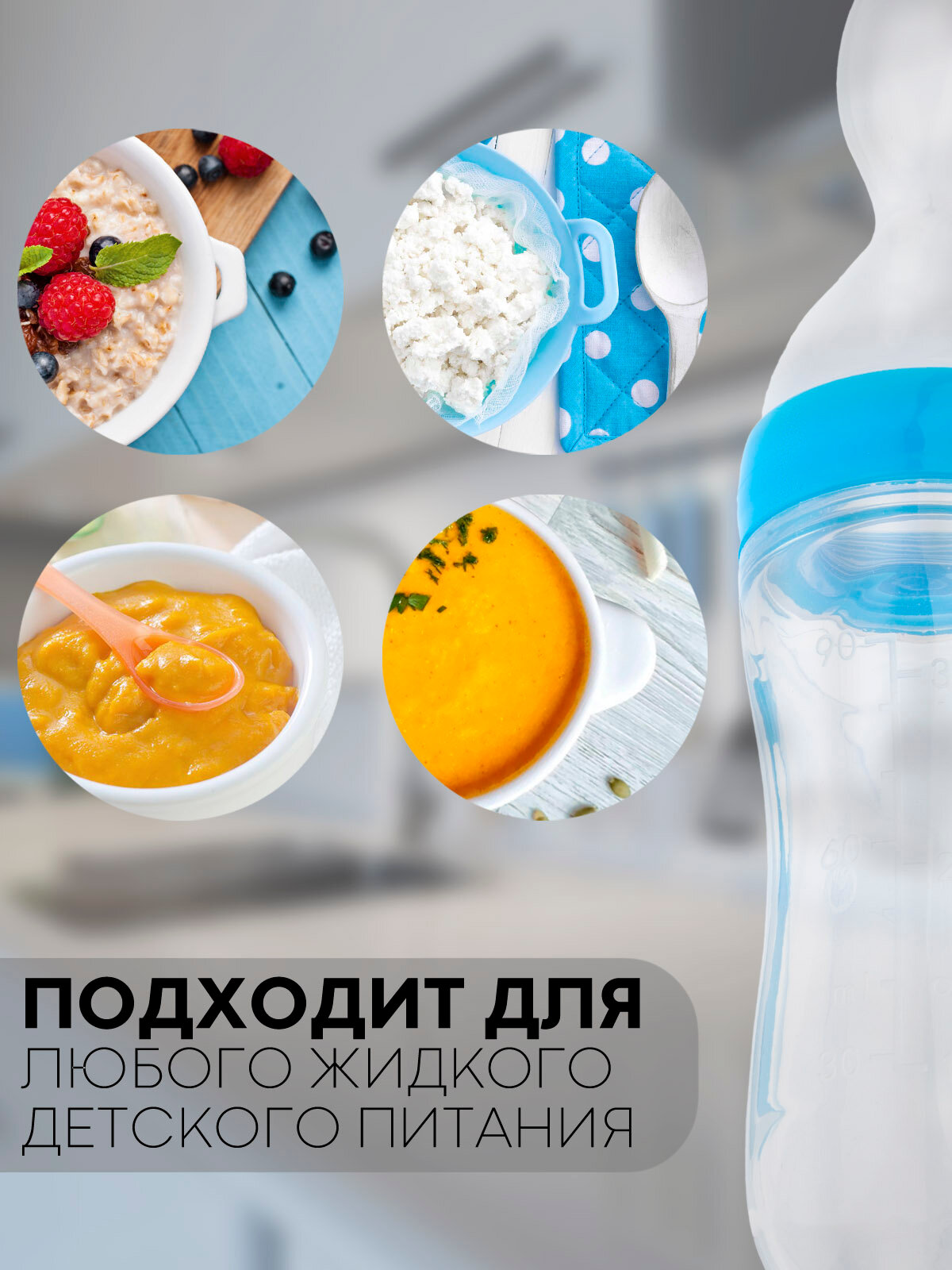 Ложка пластиковая дозатор для кормления, бренд Картофан, с пластиковой ложкой, голубая информация: