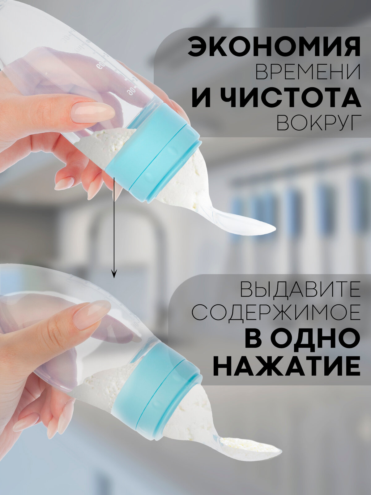 Отзывы на Ложка пластиковая дозатор для кормления, бренд Картофан, с силиконовой ложкой, голубая