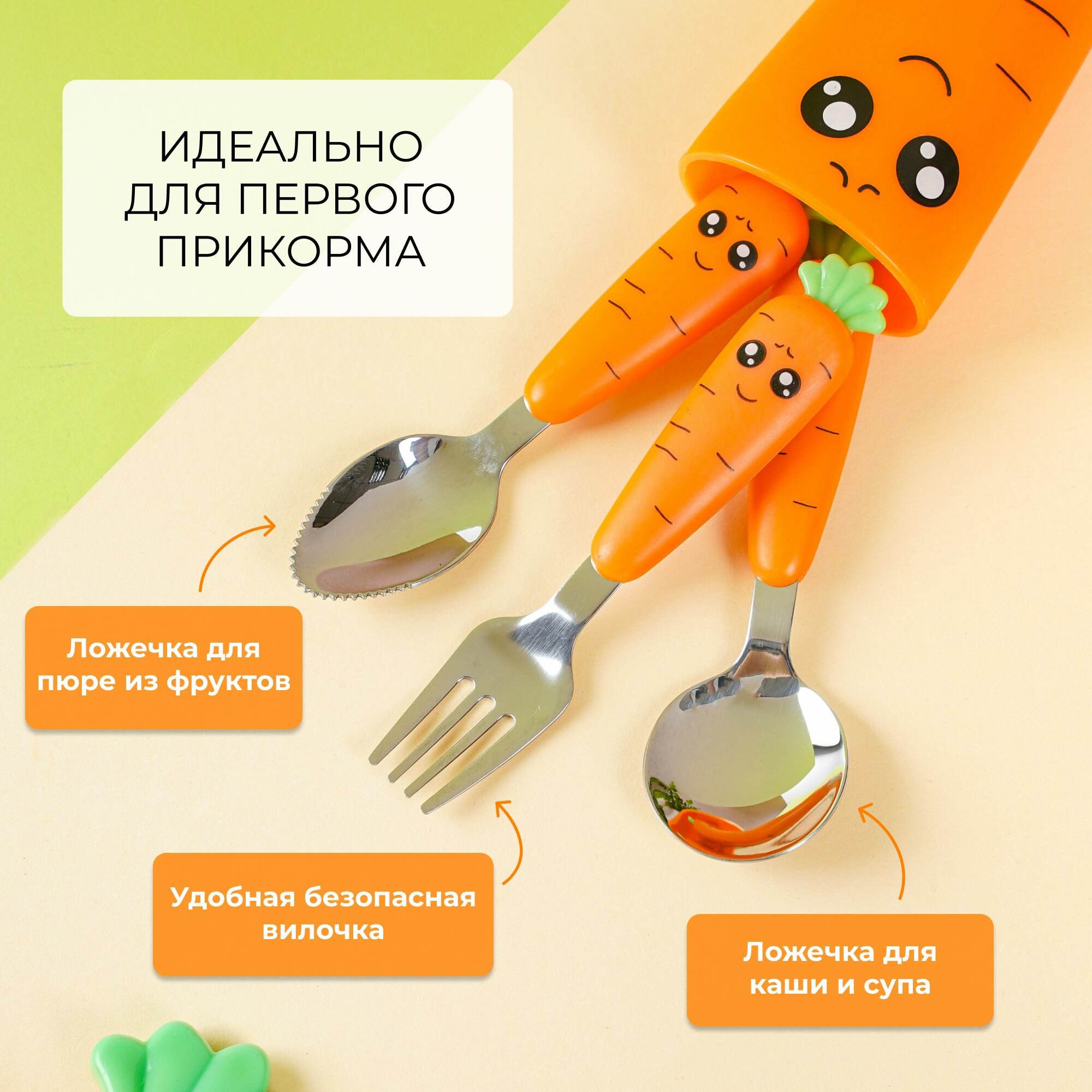 Отзывы на Детские столовые приборы. Набор детской посуды для кормления: 2 ложки и вилка, чехол