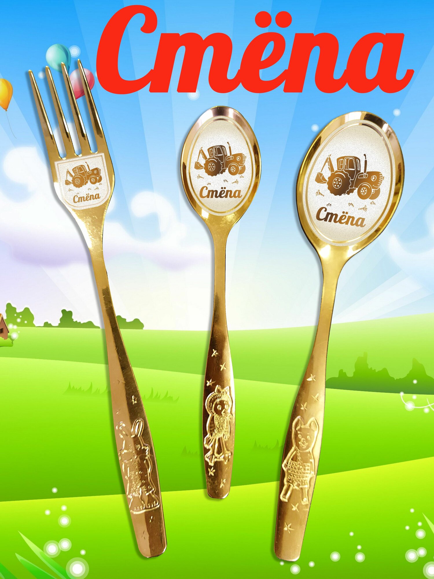 Столовые приборы YummyMia для детей, ложка и вилка для кормления развивающие моторику малышей