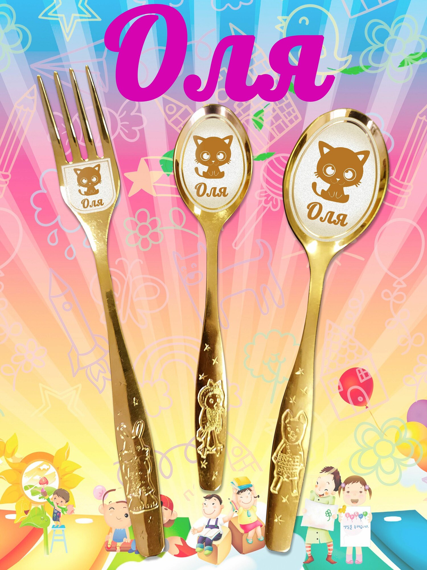 Именной детский набор ложек Оля информация:
