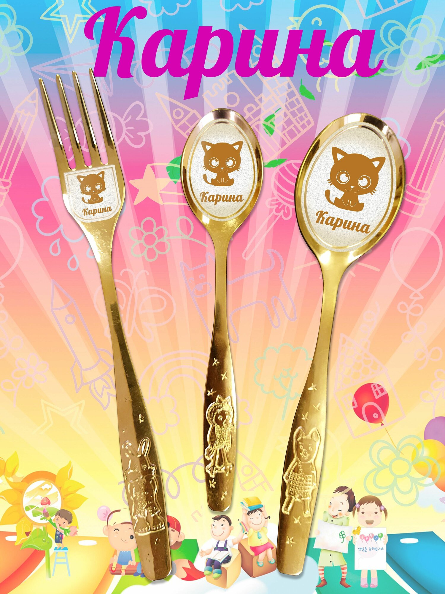 Именной детский набор ложек Карина информация: