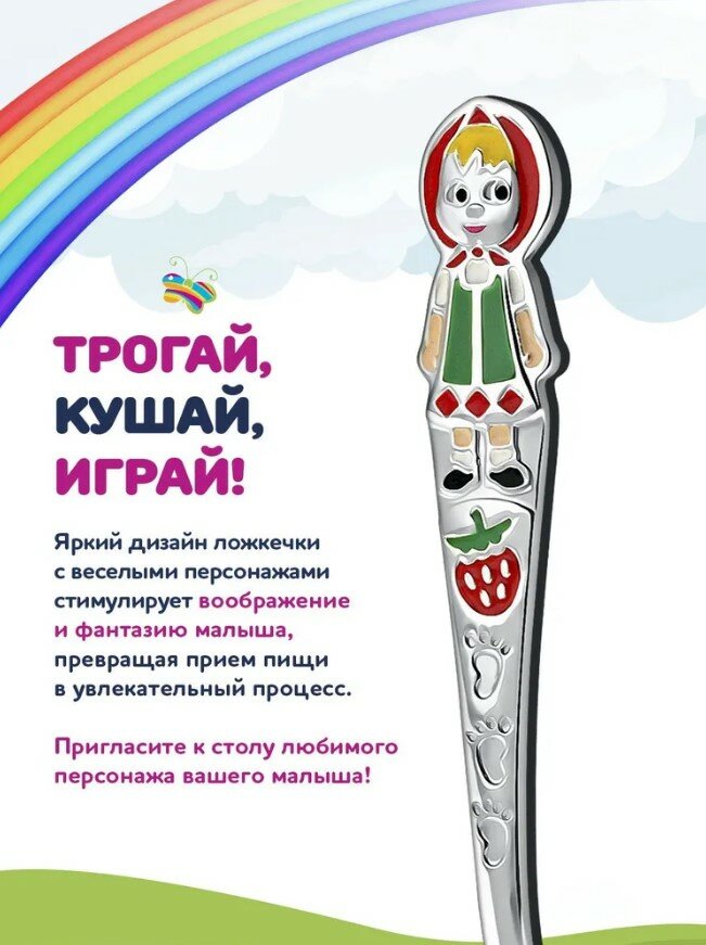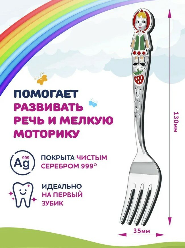 Отзывы на Вилка детская для кормления Кольчугинский мельхиор Маша посеребренная с эмалью