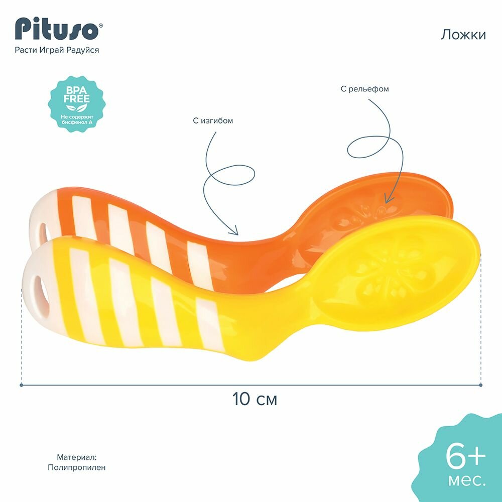 Ложки для детей Pituso анатомические с изгибом 2 шт оранжевая и желтая информация: