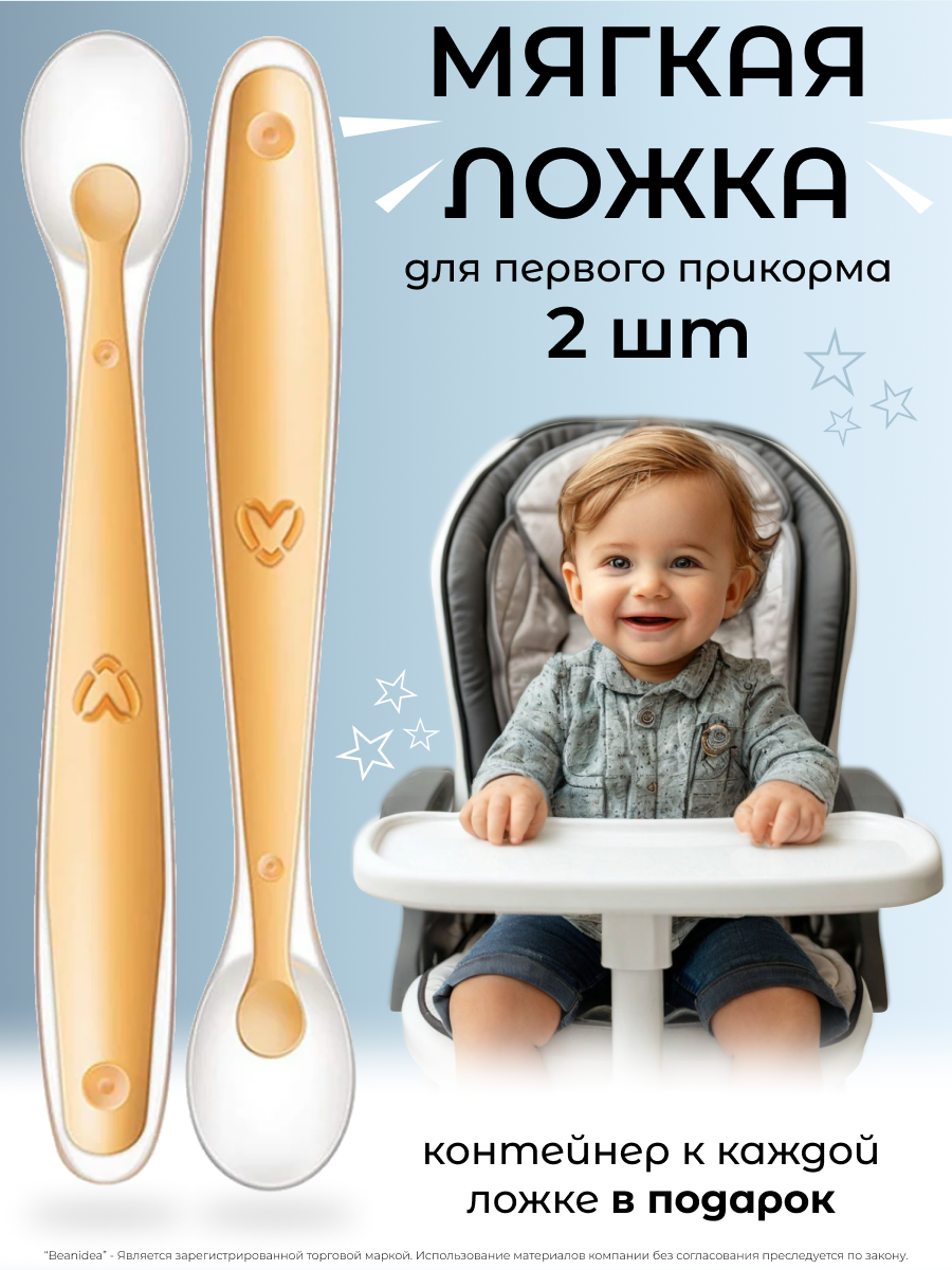 Отзывы на Ложка Beanidea Kids, 2 штуки, пищевой силикон, с кейсом, оранжевая, мытье в посудомойке