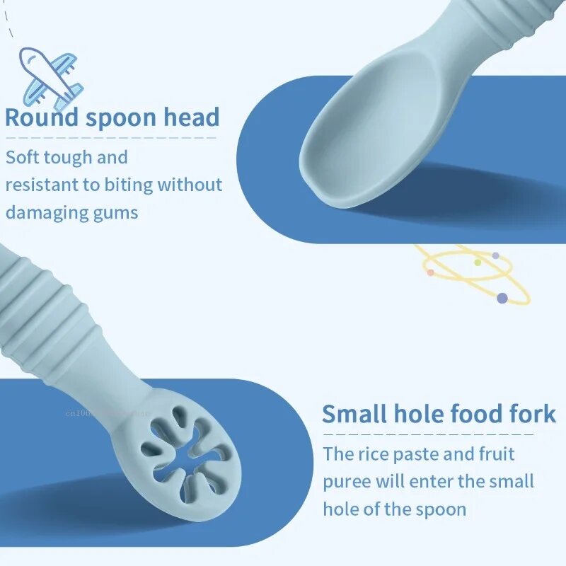 Столовые приборы YummyMia для детей, ложка и вилка для кормления развивающие моторику малышей